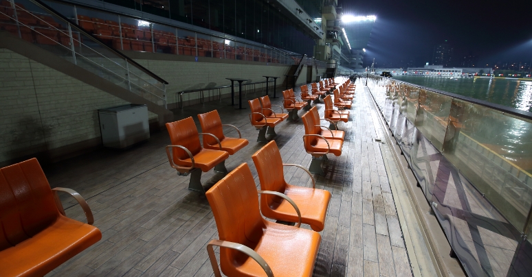 1マーク側の屋外観覧席。