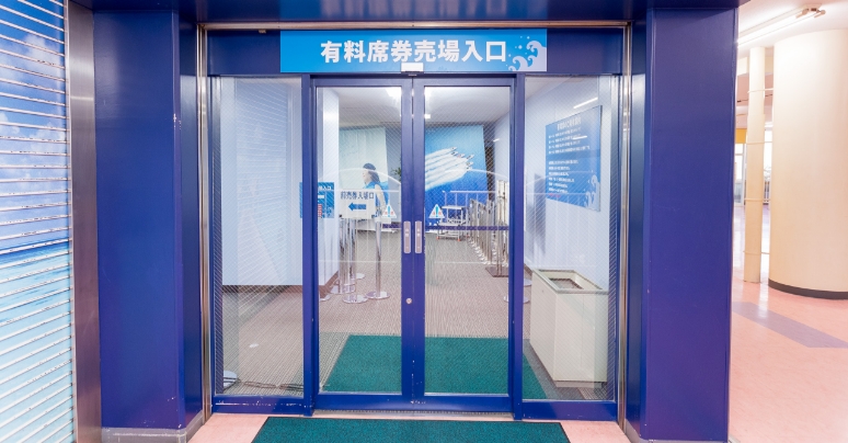 3・4Fの有料席の受付・入場口。有料席の前売券などの購入もこちらから。