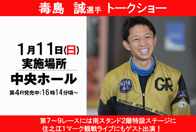 第7レース~第9レースは群馬支部人気レーサーの「毒島誠」選手のトークショーを実施いたします。