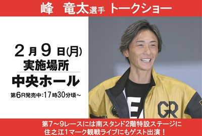第7レース~第9レースは佐賀支部人気レーサーの「峰竜太」選手のトークショーを実施いたします。