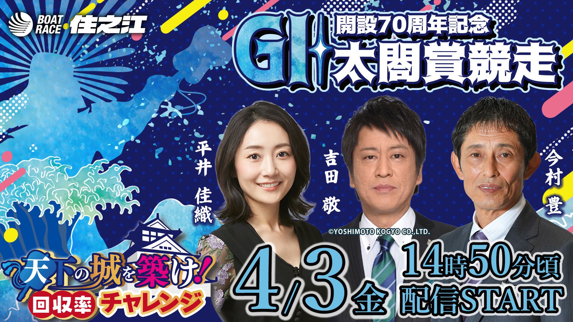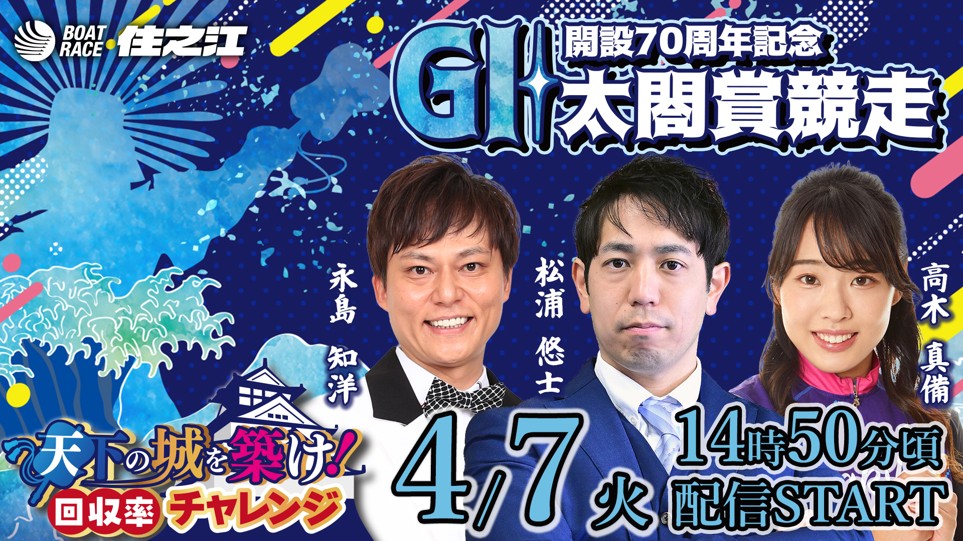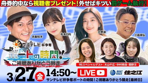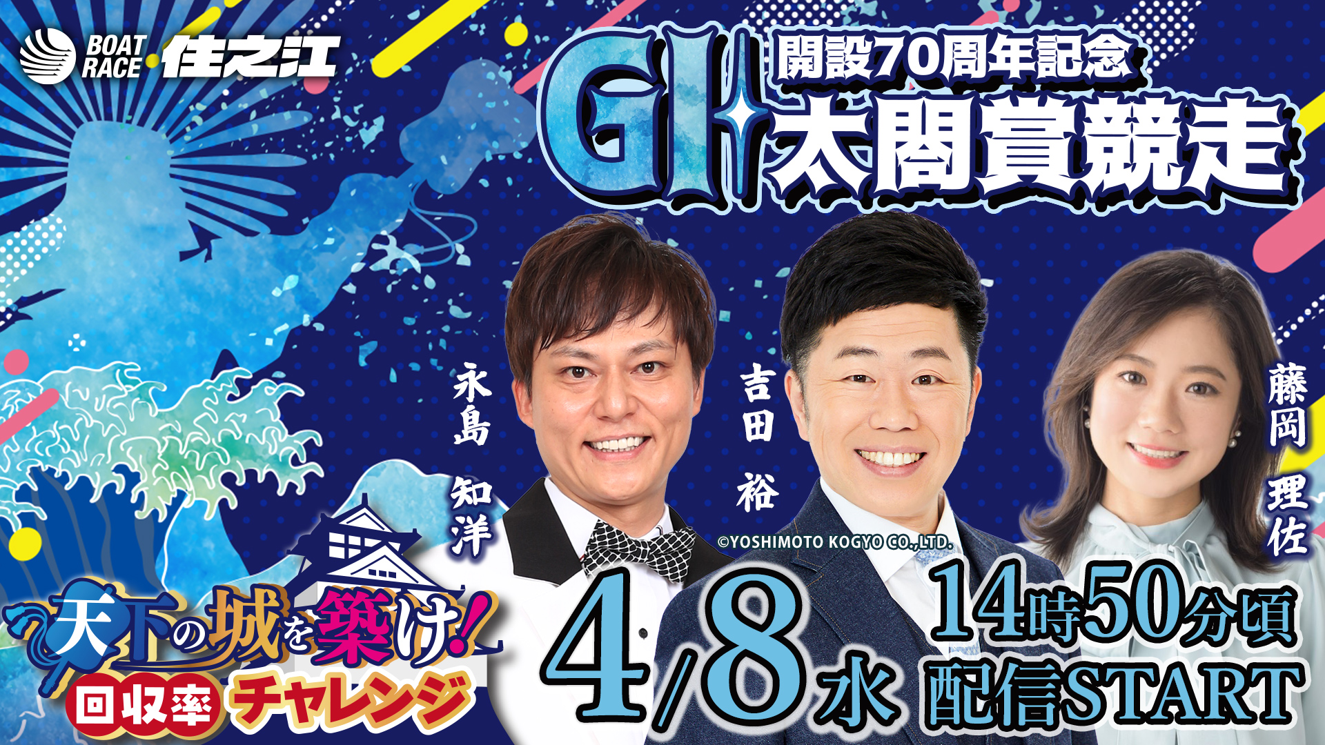 永島知洋をはじめ、「ボートの時間!」出演メンバーがボートレース住之江に登場し、YouTube LIVEの公開配信を行います。