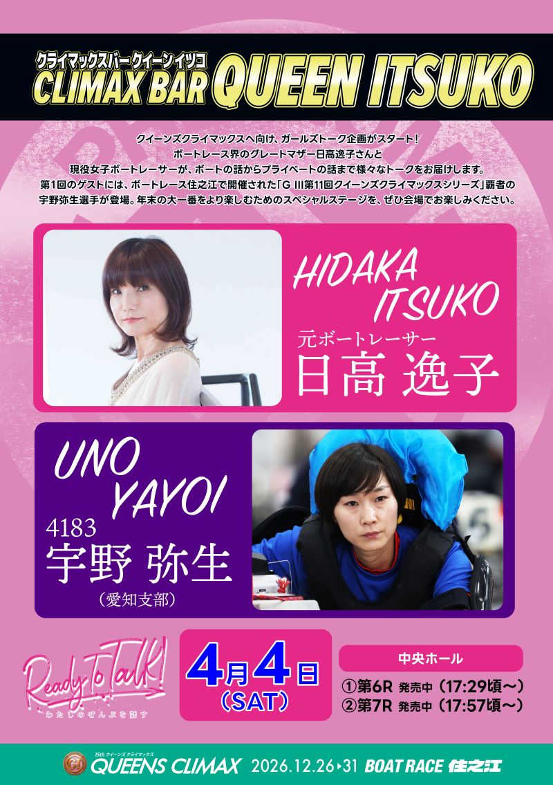 現役時代のエピソードや勝負の裏側、トップレーサーとして戦い続けてきた経験談など、ボートレースファン必見の特別ステージをお届けします。