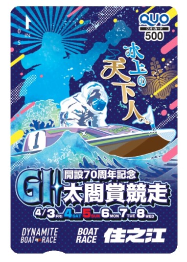 当日の住之江第8レースの3連単払戻金額下2桁と一致したラッキーカードをお持ちの方に「太閤賞オリジナルクオカード」をプレゼントいたします。