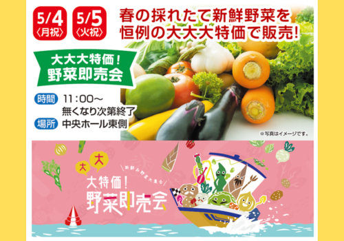 採れたて新鮮お野菜と果物を恒例の大大大特価で大集合!!